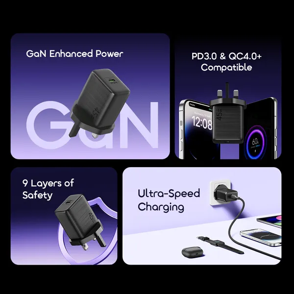 Powered by AniFastᵀᴹ technology, GaN Ultra Fast Charger intelligently adapts to your device’s requirements, ensuring the fastest and safest charge every time.