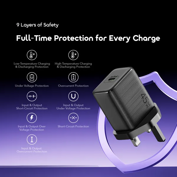Equipped with 9 layers of advanced protection, this charger ensures safe and reliable power